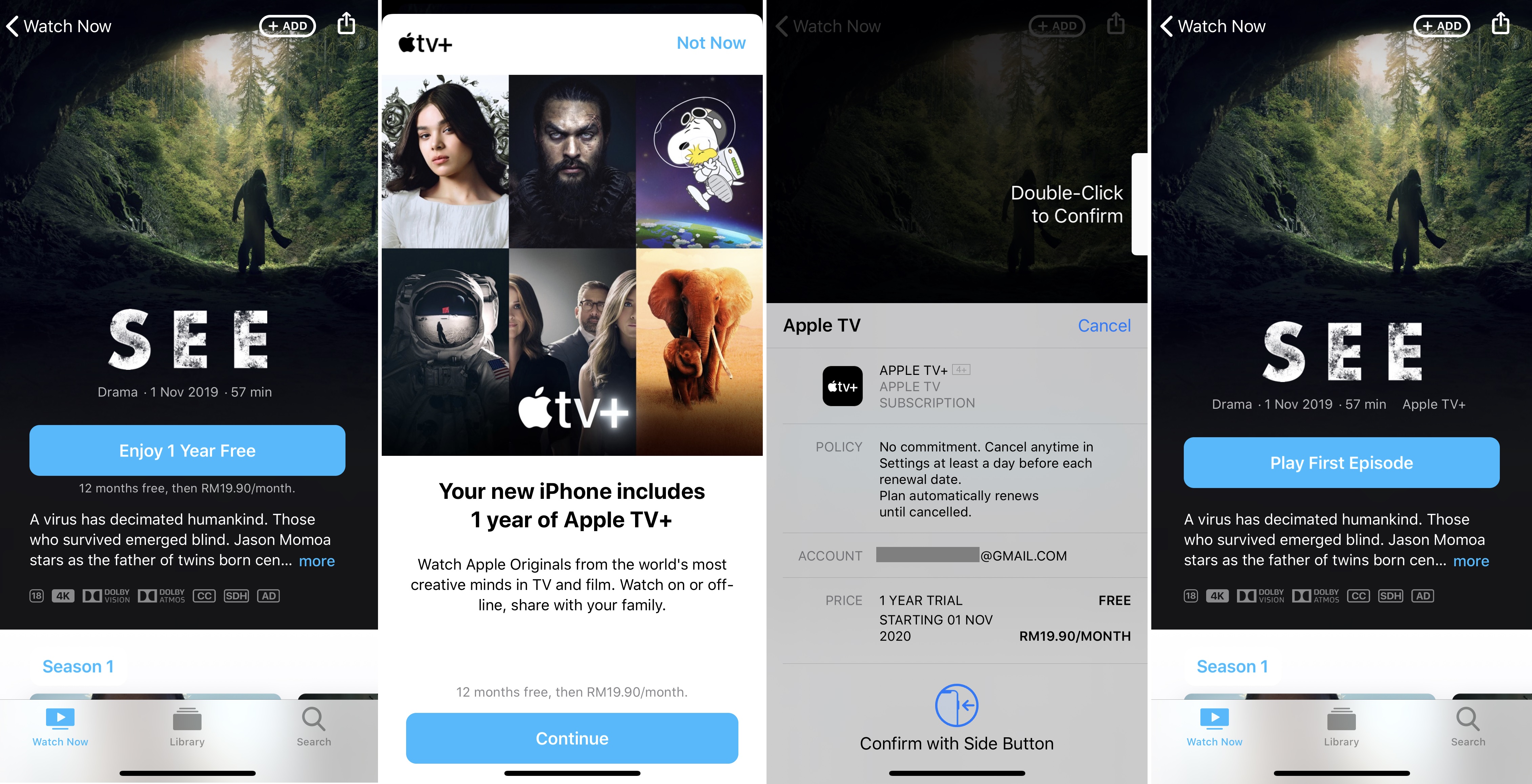 Hari ni secara rasminya Apple TV+ dilancarkan. Bagi mereka yang baru beli iPhone bermula pada tarikh 1 September 2019, layak untuk menerima langganan Apple TV Plus ini secara percuma selama 1 tahun.