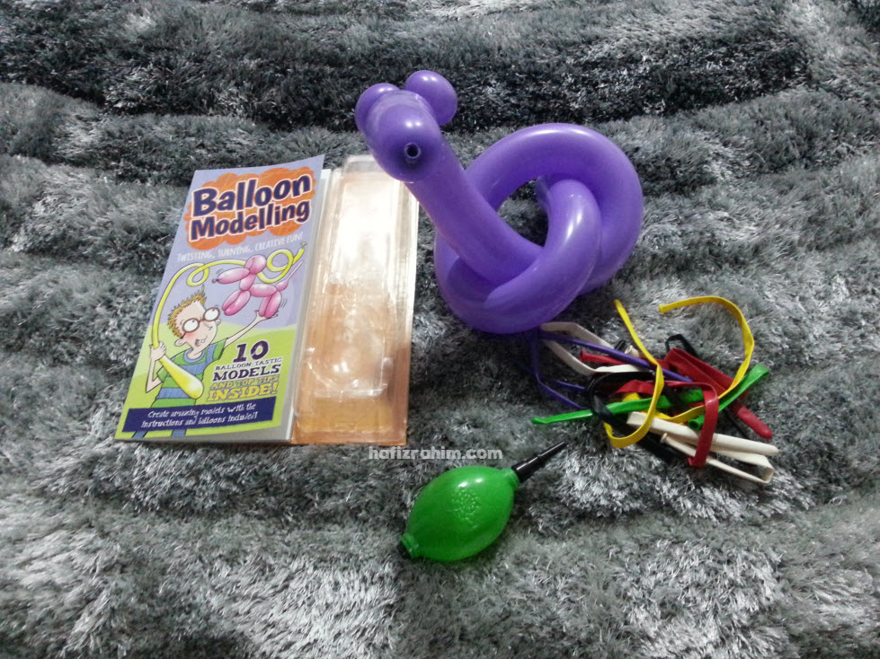 Nampak macam menarik, sebab boleh buatkan belon panjang bentuk macam-macam untuk Khair. Jadi, aku beli satu.