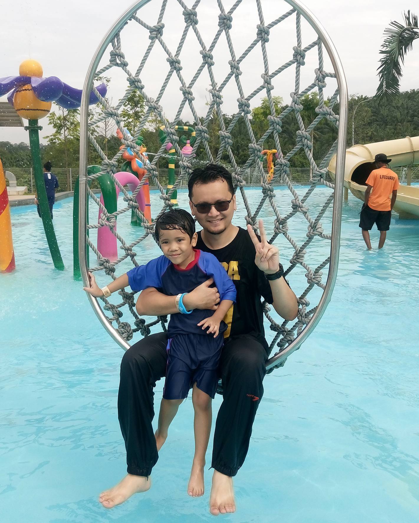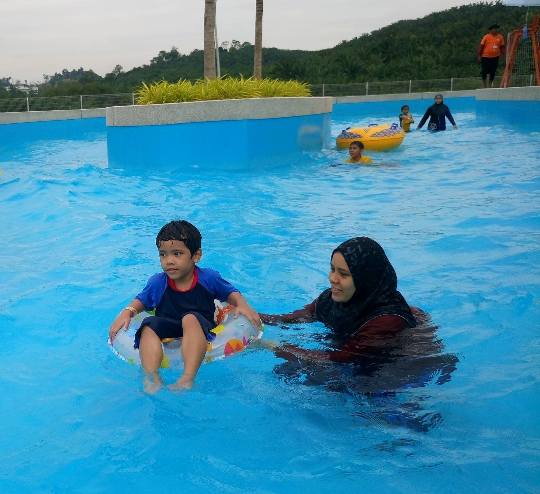 Di sini aktiviti yang sangat sesuai untuk melatih water confidence anak-anak – Khair dengan selamba je berenang-renang dengan pelampung.. Mula-mula, aku ingatkan dia takut nak mandi tempat-tempat macam ni).