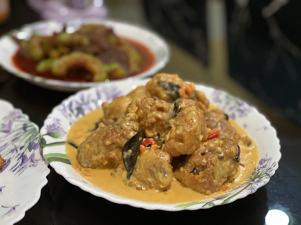 7. Bila dah nampak kuah tu mendidih, masukkan ayam goreng dan kacau hingga rata.