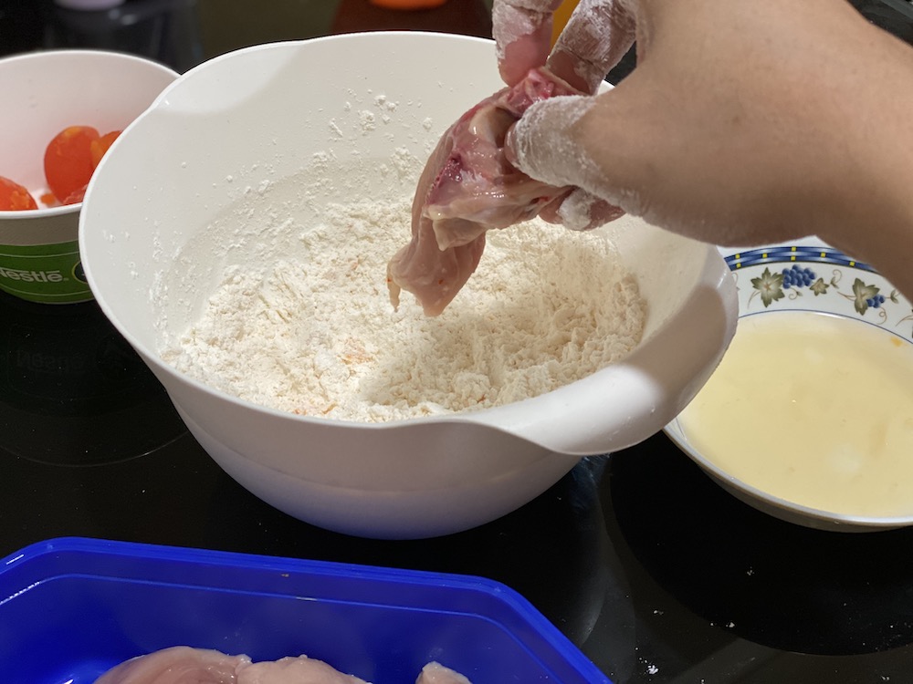 4. Goreng ayam yang dah disalut tadi sehingga warna keperangan.