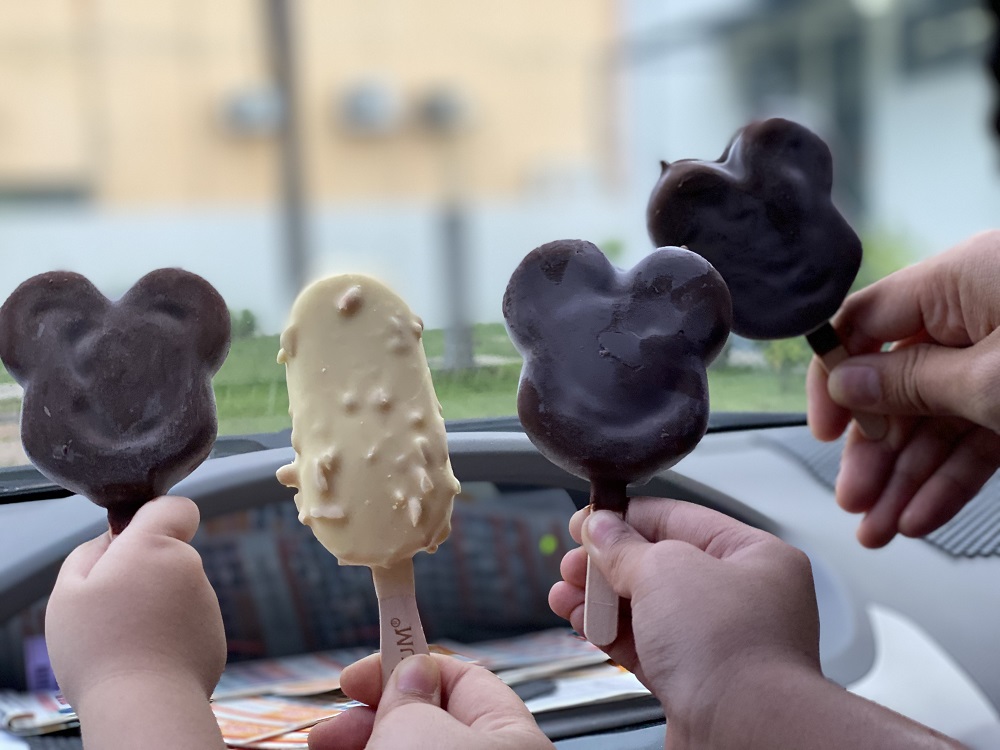 Tapi serius weh.. aiskrim Mickey Mouse ni sedap. Rasa vanila dia kaw dan ada rasa karamel. Lepas tu lapisan coklat kat luar tu pun tak mudah cair. Cumanya, bila dah habis makan.. minum air masak la banyak sikit. Manisssss.