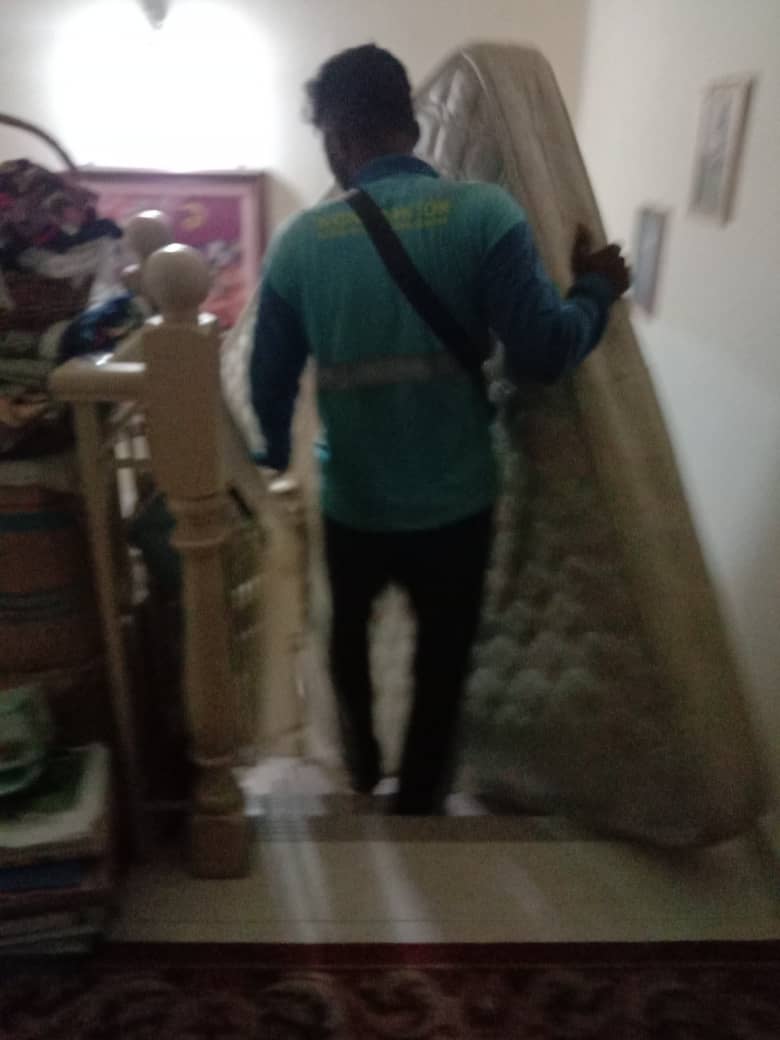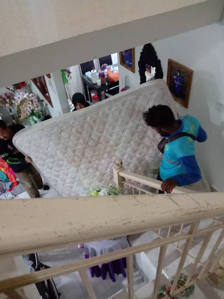 Bangla tu bawak kawan datang dengan lori rupanya, masa jawab call tu aku dah cakap tilam kat dalam rumah.. so diorang la yang keluarkan tilam dari bilik dan masukkan dalam lori. Bila dah urus macam ni kiranya dari A-Z la geng-geng iClean Selangor ni uruskan.