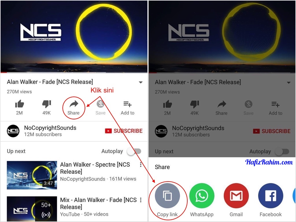 - Cari video lagu yang disukai di laman Youtube dan copy URL tersebut.