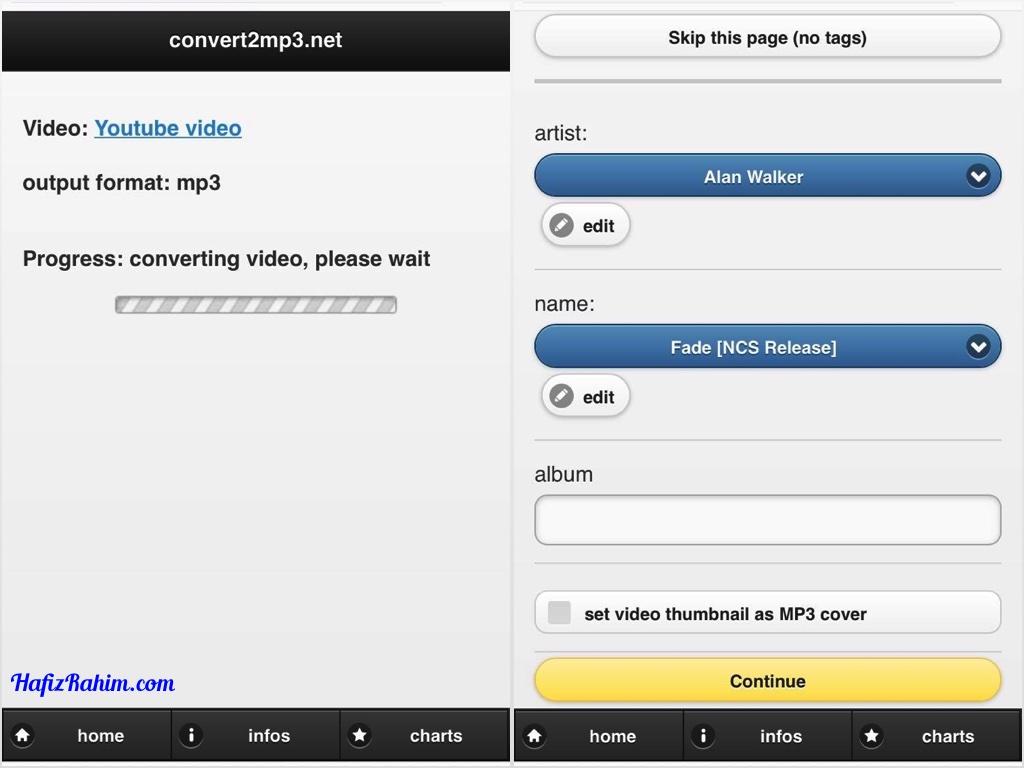 - Proses penukaran format lagu daripada video ke .mp3 turun akan dijalankan diikuti dengan pengesahan nama lagu yang dimuat turun. Klik continue untuk teruskan.