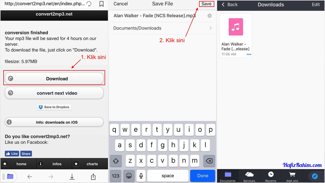 - Selesai proses penukaran format, klik pada butang Download dan Save pada paparan yang seterusnya. Fail yang selesai dimuat turun akan disimpan ke dalam dalam folder Documents/Downloads.