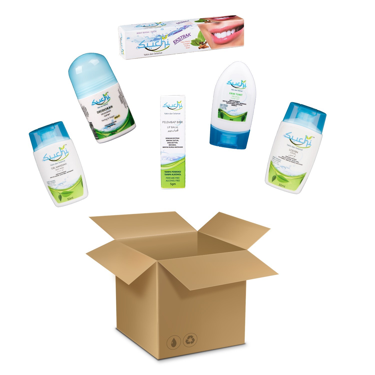 By the way, untuk set penjagaan diri Suchi tu aku dah ada pakai kat rumah. Walaupun ianya disediakan untuk kegunaan umrah ataupun haji, tak bermakna ia tak boleh digunakan untuk kegunaan harian yang lain. Best.. aku suka. Sebab ia dah didatangkan pakej dalam 1 beg plastik yang comel, senang untuk aku bawa kemana-mana saja.