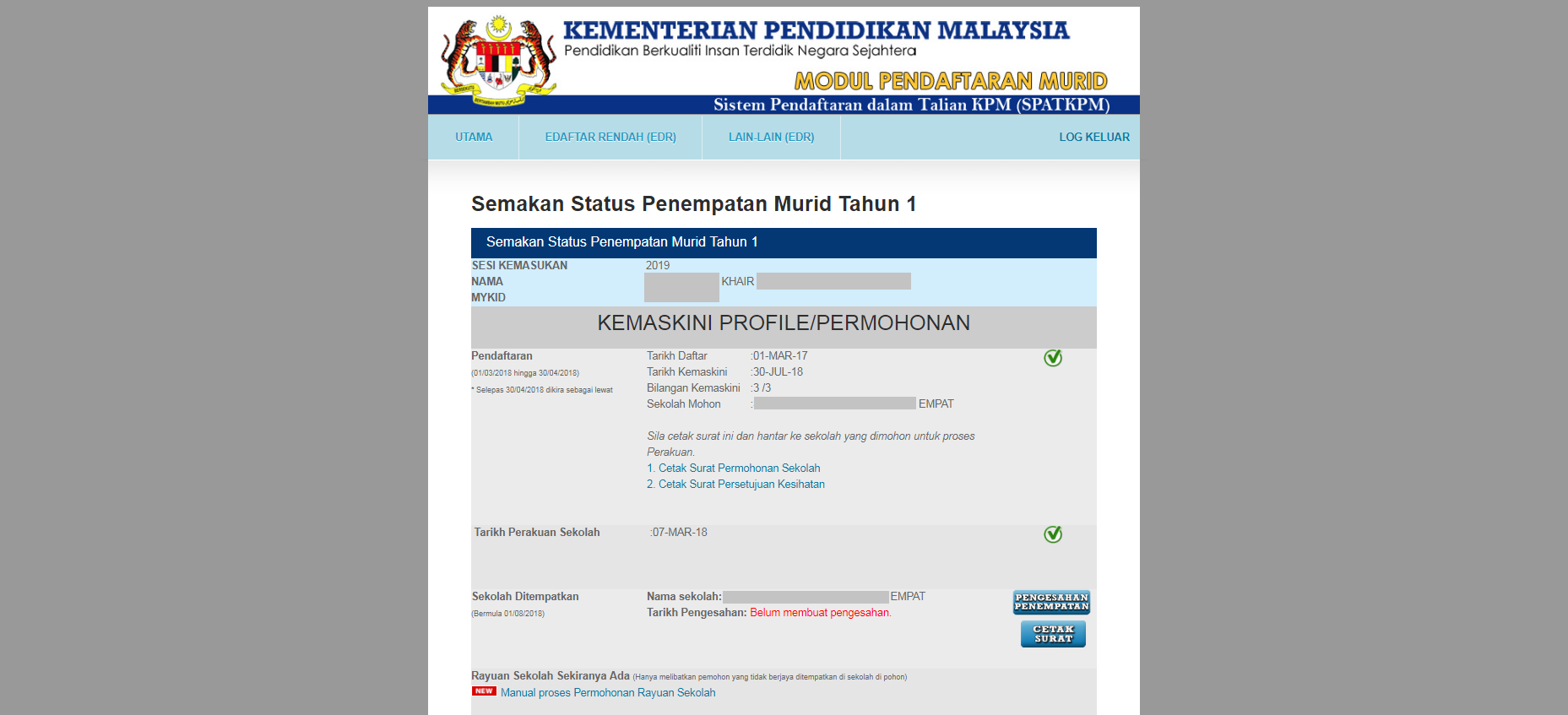 Sebelum tidur berdebar.. masa tidur pun tak berapa lena. Tengah tidur berapa kali terjaga sebab teringat benda ni.. keputusan masuk darjah 1 Khair. Actually, benda ni banyak kali dah berlegar-legar dalam kepala aku. Risau sama ada dia dapat ke tidak masuk ke sekolah kluster kecemerlangan yang kitorang mohon tu.
