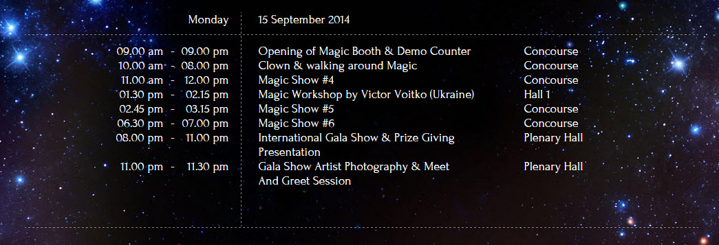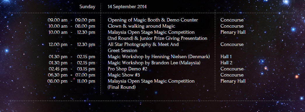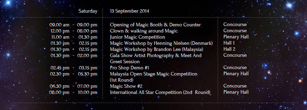 Program ini sebenarnya merupakan sebuah program yang bersempena dengan cuti sekolah. Ia adalah program yang pertama seumpanya dengan gabungan pertandingan ahli silap mata, bengkel dan juga pameran. Bertempat di PICC, ia berlangsung selama 4 hari iaitu daripada 12-15hb September 2014.