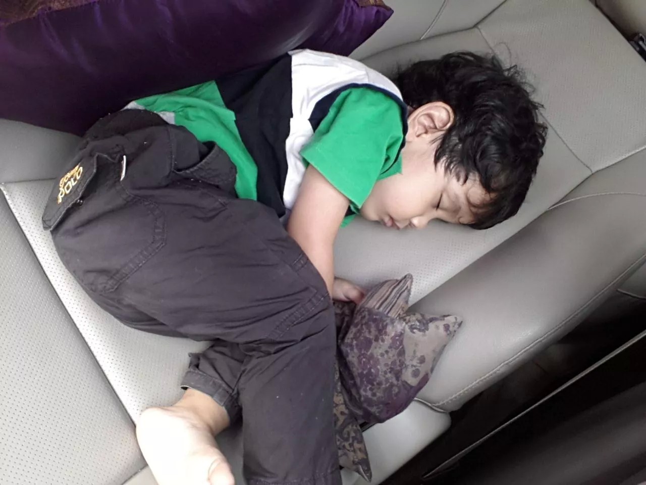 Gini lah gayanya.. Elok-elok dah sampai ke destinasi yang dituju, tak nak bangun. Nak tak nak aku sebagai ayah mithali terpaksalah jadi penunggu dalam kereta ketika putera ni sedang beradu. Hahaha.
