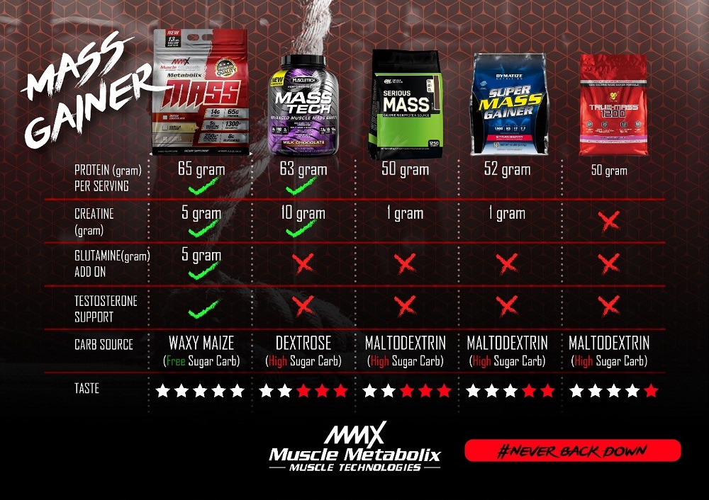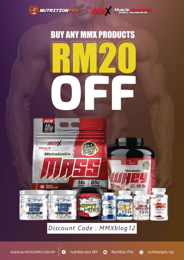 By the way, dalam banyak-banyak produk. Yang menarik perhatian aku ialah MMX metabolix mass. Sebabnya ia mengandungi 65g protein per servings, 5g creatine, 8g glutamine, 14g BCAA, Testosterone support dan Waxy Maize (Free sugar carb). Aku juga difahamkan kadar serapan Metabolic mass dengan nutrisinya kedalam badan agak laju tanpa menyebabkan masalah perut buncit. So why not aku cuba nanti kan. Ada pelanggan yang dah guna siap naik 8kg dalam tempoh sebulan setengah. Siap ada money back guarantee kalau tak puas hati.