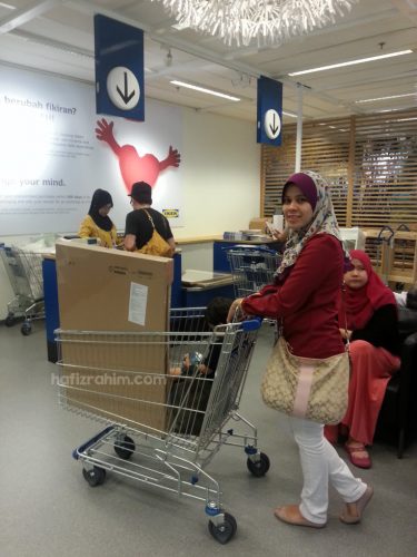 Kalau nampak isteri shopping terlebih-lebih. Biarkan aje. Nampak mana yang tak berkenan, balik rumah nanti suami boleh pergi refund balik kat IKEA masa isteri tengah tidur. Okay tak tips ni? Hahaha.