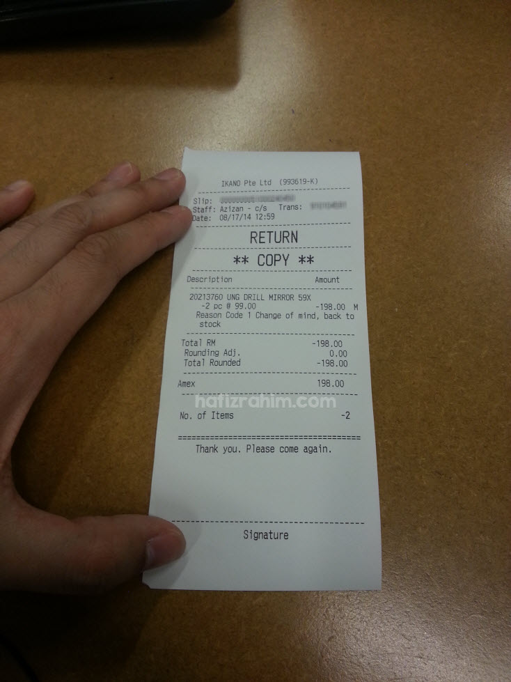 Sampainya di kaunter, korang perlu explain serba sedikit tentang situasi yang mana memerlukan korang refund barangan yang telah dibeli dan kemudiannya pegawai bertugas akan membuat semakan terhadap resit dan barang tersebut.