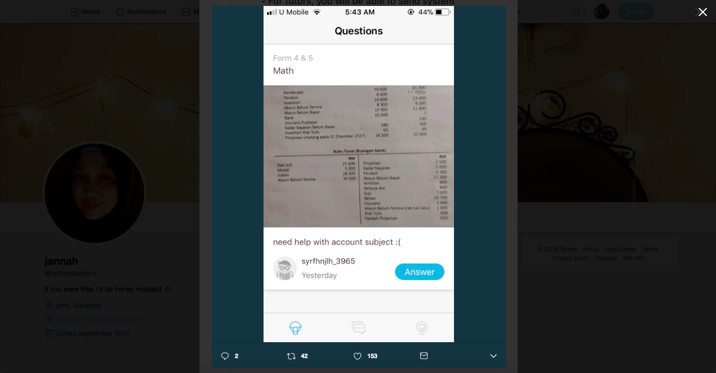 Students pay to snapask company and snapask pays us, the tutors. Tutors get paid RM1.50 for every session. Regardless the answer is right or wrong. Once we pick the question up, the money is automatically cashed in our acc. Like I said, there’s no turning back.