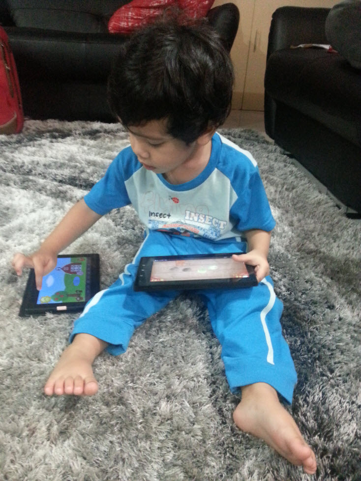 Ah sudah. Dah ada 2 biji pulak tablet dekat rumah. Satu yang aku baru beli untuk Khair tempoh hari, satu lagi yang aku dah beli 2 tahun lepas.