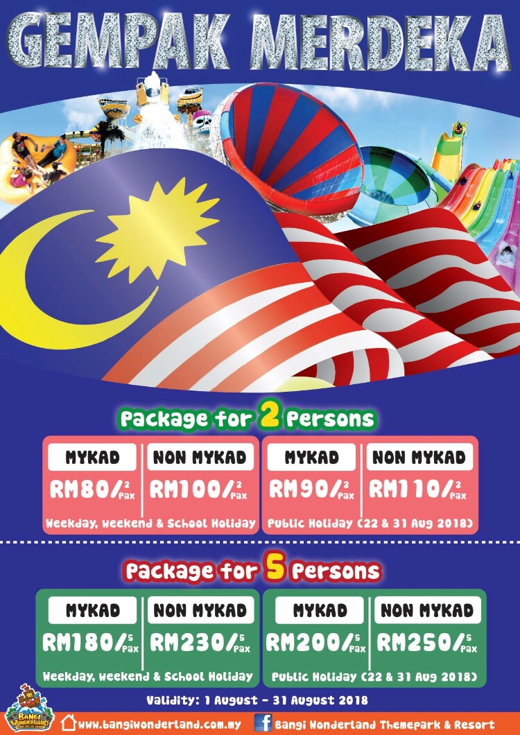 Akan tetapi bersempena dengan bulan kemerdekaan, harga istimewa telah diperkenalkan buat pemegang Mykad yang datang secara berkumpulan seramai 5 orang, layak membeli tiket dengan harga RM180 sahaja untuk hari biasa, hari minggu dan cuti sekolah, manakala harga sebanyak RM200 dikenakan pada tarikh 22hb & 31hb Ogos 2018 (cuti umum).
