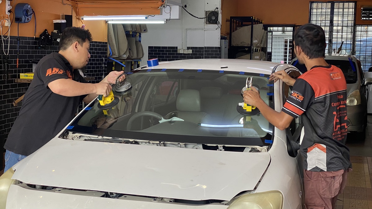 Tak ada yang menyakitkan mata aku ketika proses tukar windscreen ni dibuat.. time cabut cermin, pekerja dia buat pelan-pelan.. getah cermin pun kikis slow-slow. Tempat cermin kotor diorang bersihkan.