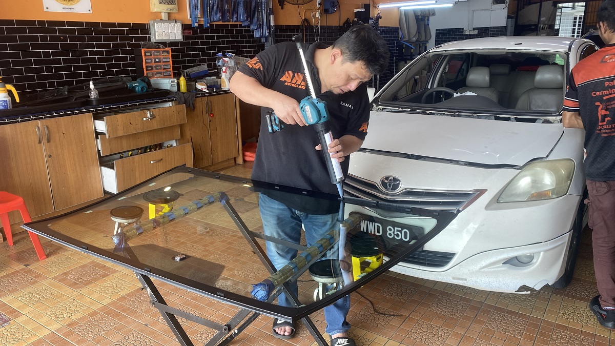 Bermula daripada saat diorang cabut sampailah siap gam dan pasang balik windscreen kereta aku, mengambil masa selama 1 jam lebih saja.