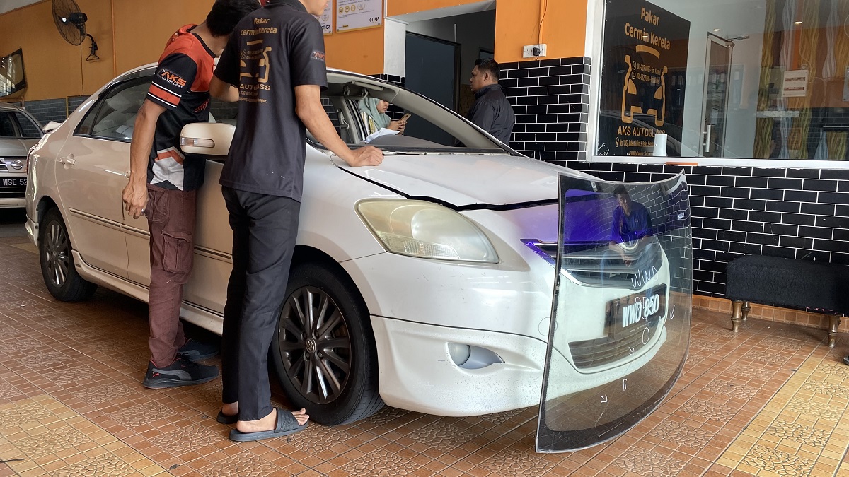 Sebelum aku pergi, aku call dulu.. aku cakap nak tukar windscreen. Dia kata boleh walk in. Kemudian bila sampai kedai, aku bagi IC dan lesen untuk diorang buat salinan untuk claim daripada pihak insurans.