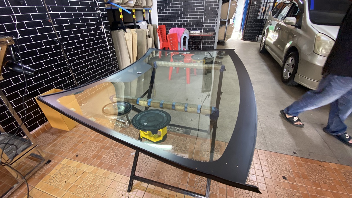 Waktu aku sampai dalam jam 10.00 pagi.. anak-anak buah tokey yang uruskan segala benda dulu, kemudian dalam jam 11.00 pagi tokey dia pulak datang ke kedai.. yang mana untuk proses meletakkan gam pada cermin, tokey dia sendiri yang buatkan.