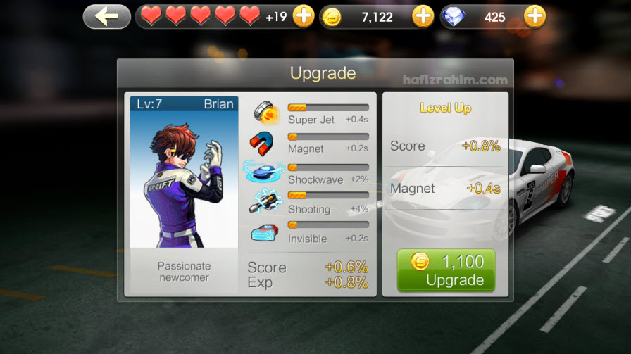Ya, guna diamond. Dengan menggunakan diamond korang akan memperolehi beberapa kelebihan yang akan membantu korang dalam misi mengumpul mata tertinggi, antaranya; upgrade kereta yang lebih laju, upgrade experience pemandu, penjimatan petrol, auto-collect coin, kurangkan kerosakan kereta, top speed yang lebih tinggi dan juga lain-lain.